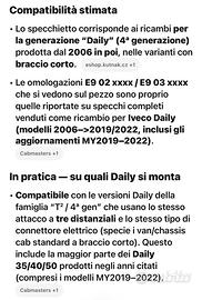 Causa errato acquisto, vendo specchietto retrovisore Iveco Daily a braccio corto , compatibile su tutti i Daily dal 2006 in poi, compresi gli aggiornamenti del 2019 / 2022.