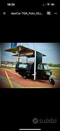 Vendo Ape diesel da Street food, sistema di sollevamento e piedi di stazionamento anteriori idraulici. Allestimento neutro adatti per qualsiasi attività , apertura su tre lati , con banconi scorrevoli, un lato con cella frigorifera a tre ante e cassettone refrigerato, dall'altro una tasca scaldapanini sottobanco, banco neutro e lavandino con boiler acqua calda e serbatoio di carico e di scarico, pochissimi chilometri perfettamente funzionante.