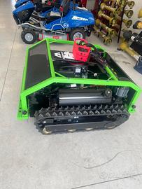 Tagliaerba e trinciasarmenti radiocomandato marca MOMACH ,modello MM80A ,con tecnologia ibrida per terreni erbosi e irregolari. Larghezza cingoli 120mm. Motore termico Loncin a benzina e motore elettrico da 1kw x2,tensione 48V. Lama a 2coltelli, altezza taglio da 5 a 12 cm. Radiocomando con distanza operativa fino a 100m. Possibilità di pagamento rateale