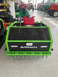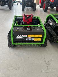 Tagliaerba trinciasarmenti MOMACH MM55A radiocomandato. Trazione con cingoli per affrontare le pendenze in sicurezza, due coltelli rotanti che tagliano per una larghezza di 55cm e altezza taglio regolabile da 3 a 12 cm. Macchina ibrida che combina un motore a benzina per l'azionamento dei coltelli di taglio con due motori elettrici brushless per l'azionamento dei cingoli