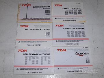 Disponibili Manuali di riparazione, per Carrelli Elevatori TCM Diesel ed Elettronici . Disponibili Manuali uso e Manutenzione. Disponibili Certificati di Conformità, dal 1995 al 2010 per Carrelli TCM regolarmente importati.