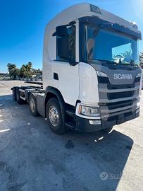Telaio Scania G500 8x2, del 2019, Euro 6, passo 4950, cambio automatico, interni in pelle, computer di bordo, cabina letto, km 244000 circa, il tutto in perfette condizioni d'uso