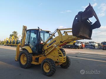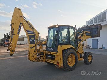 Terna rigida KOMATSU WB97R-5E0 anno 2009 ore 4800 completa di benna anteriore 4x1 con predisposizione forche, retro-escavatore standard, impianto martello, cambio Power-Shift, servocomandi posteriori, piedi stabilizzatori, motore ecot 3, omologazione stradale, targa e libretto, manuale uso e manutenzione, certificato CE