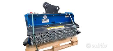 Trinciatrice simmetrica per un taglio più veloce con la rotazione dell'escavatore con bocche d'ingresso e d'uscita completamente identiche e frontalini regolabili, apribili completamente per una maggiore capacità di taglio.
