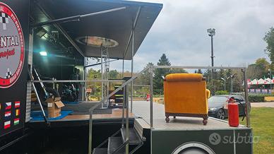 Doppio impianto elettrico a norma (380V/220V/+ generatore di servizio), impianto luci led interno+esterno, area living climatizzata adibita con box bagno (lavabo, doccia, water).