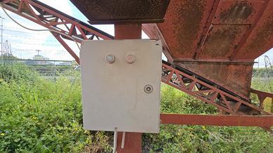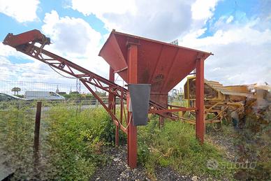 TRAMOGGIA PER INSACCHETTAMENTO MATERIALE COMPLETO DI QUADRO ELETTRICO E NASTRO DI CARICO Dimensioni: Lunghezza tappeto: 4 mt Larghezza tappeto: 40 cm Lunghezza tramoggia: 3 mt Larghezza tramoggia: 2.10 mt