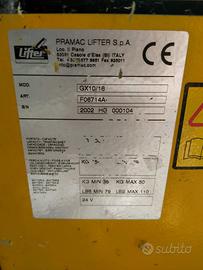 PRAMAC LIFTER, ALTEZZA DI CARICO 1600mm, PORTATA 1000 KG, BATTERIE NUOVE DA 100Ah, (DIMOSTRABILE CON FATTURA), CARICABATTERIE INTEGRATO MACCHINA MOLTO BELLA, PERFETTAMENTE FUNZIONANTE, PESO TOTALE 400 KG CIRCA
