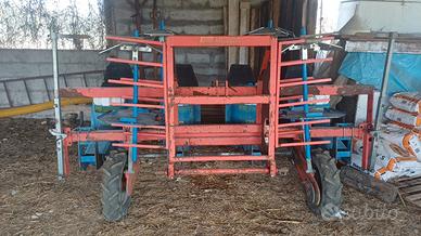 trapiantatrice a 4 file in buono stato. Distanza tra le file 75 cm La macchina F MAX è adatta al trapianto di un'ampia varietà di ortaggi La macchina può essere alimentata con diverse tipologie di moduli: piramidali, cilindrici, conici e quadretti: può piantare piantine con altezza fino a 20-25 cm. È dotato di un carosello rotativo intermittente. Questa importante caratteristica garantisce i tempi della semina. Questa trapiantatrice permette di raggiungere una resa di 3.500 piante/ora/fila, tuttavia è possibile raggiungere anche 5.000 piante/ora/fila se la semina viene effettuata da operatori esperti. Specifiche tecniche: Dimensioni di trasporto:315 cm x 285 cm x 200 cm(lunghezza x larghezza x altezza)Peso di trasporto:1500 kgAdatto per le seguenti opzioni::piante in vassoio (speedies)Adatto per piantare in lamina:NO