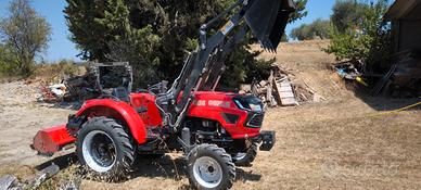 Vendo trattore agricolo nuovo , completo di caricatore frontale, con certificazione CE stage V, motore 4 cilindri 50hp, luci a led, 4x4 inseribile manuale ,doppia frizione, bloccaggio differenziale posteriore,velocità PTO 540/720, ,cambio 8F+8R con invertitore, ruote anteriori e posteriori allargabile da 145 fino a 175cm, solo testato per 6/7 ore per controllo funzionamento ,si vende con solo caricatore frontale, e con o senza accessori in più trincia a martelli e fresa .