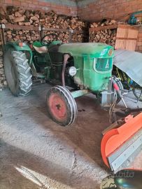 Trattore perfettamente funzionante con libretto e targato con presa di forza pompa oleodinamica e distributore a tre vie,equipaggiato con : 1) rimorchio omologato e targato Grazioli avente la trazione sull'asse e ribaltabile trilaterale; 2) lama spazzaneve larghezza ml 1.90 con comandi idraulici; 3) catene da neve asse posteriore. A corredo compreso nel prezzo vendo gruppo fanali posteriori; griglia cofano anteriore e fregio anteriore DEUTZ . Da provare . Prezzo non trattabile, non perditempo