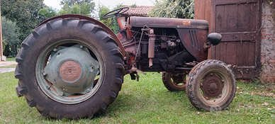 Trattore usato regolarmente fino a pochi anni fa, ma fermo da almeno 5 anni, ha bisogno di messa a punto per avviarlo. Documenti in regola e disponibili, la macchina e del 1957 ma immatricolato nel 1960. Gomme posteriori quasi nuove.
