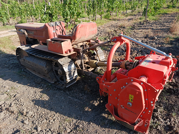 Vendo trattore cingolato Fiat 455 super 53 cavalli tipo frutteto basso largo un metro e 28 m tenuto in perfetta regola con documenti sempre tagliandato tutto funzionante lo vendo completo di una fresa spostabile pesante 140 usata poche volte, Una trincia spostabile 140, una vangatrice 130 Gramegna, una fresa leggera 130! Chiamare solo di interessati al numero 328 088 67 40 non scambio con niente grazie