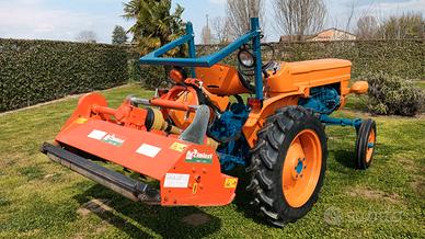 Trattore FIAT 250 degli anni 50 con libretto. Il mezzo è stato completamente restaurato, sostituita la pompa idraulica e montato un distributore a doppia leva con innesti rapidi. Completo di protezione in caso di ribaltamento, lampeggiante e faro di lavoro. Gli accessori disponibili a parte: - Tauro da 150 con spostamento a dx di 40cm, 1600€. - Aratro bivomere manuale 700€. - Vibro da 150, 550€. - Rimorchio portante con pianale e sponde in alluminio mandorlato, 900€ Per informazioni Antonio: 347 9345667