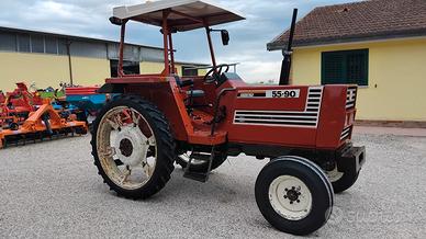 Trettore fiat 55-90 a 2 ruote motrici, motore 3 cilindri, cambio 12+3, prese idrauliche, lift o matic, idroguida, portazavorre anteriore, gommatura posteriore da culture 23 cm, perfettamente funzionante