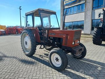Trattrice agricola usata in buone condizioni Anno 1982 Motore 4 cilindri Fiat Cilindrata 3456 cm³ Ore di lavoro 4757 Potenza 68 cv Trasmissione meccanica 12av+3rm N.2 distributori posteriori meccanici Sollevatore posteriore a controllo meccanico Presa di forza 540/1000 giri al min. Arco di protezione con tetto e frontale Pneumatici anteriori 7.50 R18 Stato pneumatici anteriori 80% Pneumatici posteriori 9.50 R44 Stato pneumatici posteriori 70%
