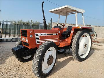 In vendita trattore agricolo Fiat 70/90 DT con motore 4 cilindri 70 cavalli, con documenti ok, idroquida a doppio pistone, prese idrauliche, inversore di marcia laterale, super riduttore, doppia frizione manuale, pto 540 e 1000 giri, 40 klm, arco di protezione omologato, zavorre anteriore, sedile nuovo, tutto in ottime condizioni