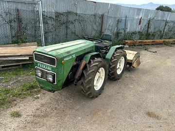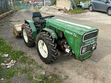 Trattore Agricolo di tipo frutteto Ferrari 75 motore Lombardini bicilindrico 35 cavalli con documenti in regola targa e libretto compreso di fresa da 120 cm snodato, appena tagliandato e con batteria nuova