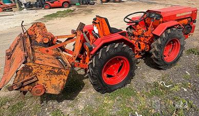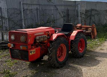 Trattore agricolo di tipo frutteto con motore bicilindrico Lombardini 35 cavalli con documenti in regola targa e libretto, appena tagliandato con batteria nuova completo di fresa da 120 cm