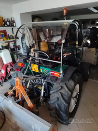 Vendo per inutilizzo trattore gommato arbos 3050 della casa Goldoni (Goldoni 3050-RONIN), trazione automatica 4x4, motore Lamborghini 48 cv raffreddato con radiatore, anno 2019, ore di lavoro circa 700 ,12 marce avanti e 12 indietro con dispositivo fast revers, presa di forza a due velocità 540/1050, doppia presa idraulica, sollevatore,lampeggiante,barra di protezione, zavorre anteriori 75 kg, zavorre ruote posteriori 30 kg cadauna,doppio specchio retrovisore, terzo punto meccanico,velocità cambio : 4 marce veloce,4 marcie media velocità ,4 marcie, velocità lenta, sterzo idraulico. Con il trattore si omaggia cassone idraulico deleks mt 1,40 totalmente ribaltabile idraulicamente e copertura artigianale costruito con tubolare e plexiglass. Trattore ingrassato e tagliandata,Disponibile ad ogni prova.