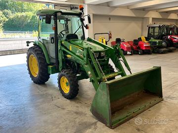 TRATTORE JOHN DEERE 4066R in PERFETTO STATO, ANNO DI PRODUZIONE: 2016, ORE DI LAVORO: 357, motore COMMON RAIL - Yanmar a 4 cilindri da 66cv, trasmissione eHydro a doppio pedale - IDROSTATICA, completo di : LoadMatch, MotionMatch, SpeedMatch, Cruisle Control, Freni a disco in bagno d'olio, Freni indipendenti su ciascuna ruota, JOYSTICK con terza funzione, cabina ComfortGard, telaio grande, capacità di sollevamento: 1.134kg, capacità di traino: 2.460kg, PTO posteriore, caricatore frontale ORIGINALE JOHN DEERE modello H180 completo di BENNA.