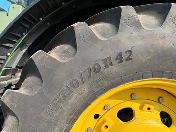TRATTORE JOHN DEERE 8370R IN OTTIMO STATO, ANNO: 2020,ORE DI LAVORO: 7135h TRATTORE COMPLETO DI: Motore John Deere a 6 cilindri da 9.000cc da 420cv Trasmissione a variazione continua AutoPowr (IVT) 50 km/h con CommandARM Cabina CommandView III Premium Sospensione della cabina Sedile ComfortCommand Pacchetto radio Premium Luci Premium Pompa idraulica doppia 321 l/min Cinque distributori elettroidraulici Premium Attacco a 3 punti con capacità di 9.000 kg ILS con bloccaggio del differenziale idraulico, freni a disco in bagno d'olio Joystick elettrico Retrovisori esterni destro e sinistro a regolazione elettrica telescopici e riscaldati PTO anteriore indipendente Terzo punto idraulico posteriore - Categoria 4 Sollevatore anteriore Premium con due attacchi anteriori idraulici, capacità max. di sollevamento 5.200 kg Frenatura del rimorchio, sistema pneumatico a due linee Parafanghi anteriori pivotanti GOMMATURA ANTERIORE: 600/70 R30 POSTERIORE: 710/70R 42 PER MAGGIORI INFO: VADYM KRAVCHUK ANDREA LENZI
