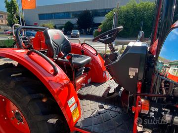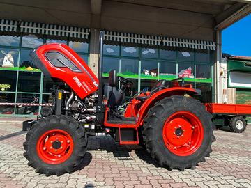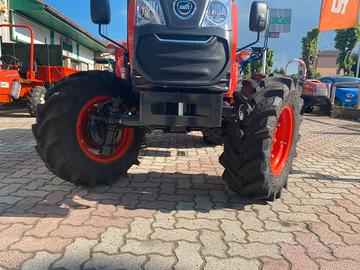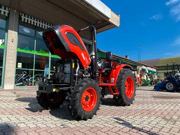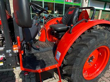 Trattore KIOTI DK 5020 H-Shuttle - Motore 1826cc TurboDiesel Common Rail Tier 5 - Raffreddato a Liquido 3 Cilindri Hp 57 - Piattaformato con Leva Cambio 16 AV + 16 RM Laterale con Inversore Idraulico Synchro al Volante su Tutte le Marce - 4 Selettori Marce Super-Ridotte, Ridotte, Normali & Veloci - Velocità Minima 0,33 Km/h - Inserimento Trazione ad Innesto ElettroIdraulico a Pulsante con Posizione per Maggiorare Sterzata in Spazi Ristretti (Super Steer) 75 Gradi con MicroVibrazioni del Ponte - Cruscotto Digitale - Sollevatore ad Elevata Capacità di Sollevamento (Kg 1.717) - Presa di Forza a 2 Velocità 540/750 Sincronizzata con Blocco in Caso di Alzata Sollevamento - Doppio Dispositivo di Traino a Barra & Gancio di Traino Regolabile in Altezza - Sistema di Trazione Anteriore con Frizione Idraulica MultiDisco - 2 Distributori a 4 Uscite a Doppio Effetto - Sedile DeLuxe Regolabile con Sospensione Massimo Confort - Capacità Serbatoio 45 Litri - Freni a Bagno d'Olio - Ponte Anteriore Maggiorato - Larghezza Minima Esterna cm 148 - Peso Kg 1.610 - Versione Compatta Tipo Frutteto - Disponibilità Intera Gamma da 25 a 80 Hp con Possibilità Cabina & Caricatore Anteriore Originale - Concessionario Ufficiale KIOTI - Prezzo in Offerta - Possibilità Installazione Kit Industria 4.0 per Accedere alle Agevolazioni Recupero Credito di Imposta sui Contributi del 20% o 65% - Richiedi Tranquillamente il Tuo Preventivo - Possibilità Finanziamento Intero Importo Fino a 50.000 Euro in Tutta Italia con Durata Massima 120 Mesi e Delibera in Giornata (Interamente Online) - Super Offertissima in Pronta Consegna -