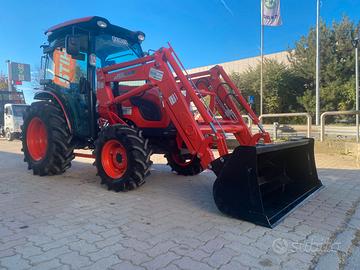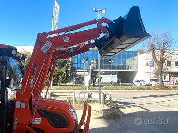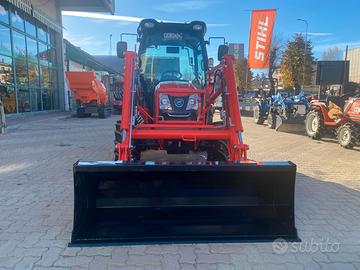 Trattore KIOTI DK 6020 Cabinato con Caricatore KL 5510 N - Ruote TRACTOR - Trattrice Agricola con Cabina Originale dotata di Aria Condizionata - Motore Diesel Common Rail 3 Cilindri Raffreddato a Liquido 1.826 cc Turbo Euro 5 - Hp 60 con Potenza Incrementale - Piattaformato con Leva Cambio 16 AV + 16 RM con Inversore Meccanico - Leva al Volante con Inversore Sincronizzato su tutte le Marce con Super Riduttore a 4 Selezioni - Inserimento Trazione ad Innesto Elettroidraulico a Pulsante - SuperSteer per Maggiorare Sterzata fino a 75° - Ponte Anteriore Maggiorato & Sterzata in soli 2,61 metri - Innovativa Gestione della Trazione Indipendente sulle 4 Ruote in caso di Pattinamento - Cruscotto Digitale - 2 Distributori Idraulici a 4 Uscite a Doppio Effetto - Sedile DeLuxe Regolabile con Sospensioni Massimo Confort - Capacità Serbatoio 45 Litri - Freni Disco in Bagno d'Olio - Ruote TRACTOR con Gommatura 280/70R16 380/70R24 - Prodotto Altamente Affidabile & Tecnologicamente Innovativo - Gancio Traino Anteriore - Gancio Traino Posteriore Scorrevole Cat X (ex Cat C) - Completo di Caricatore frontale Originale Kioti KL 5510 N Versione Autolivellante con Comandi Joystick in Cabina - Capacità Sollevamento Kg 1.232 al Perno di Rotazione alla Massima Altezza - Sgancio Rapido Totale del Caricatore e Sgancio Rapido Attrezzo Terminale - Completo di Benna Terra - Opzionali : Forca Rotoloni Fieno e Forca Pallet, Tutti con Sgancio Rapido - Opzionale Sollevatore Anteriore Integrato ad Elevata capacità di Sollevamento e Presa di Forza 540 giri con Bracci e Accumulatore di Azoto - Garanzia 5 Anni o 3.000 ore (l'evento che si verifica prima) - Prezzo in Offerta - Possibilità Installazione Kit Industria 4.0 per Accedere alle Agevolazioni Recupero Credito di Imposta sui Contributi del 20% (più 10% Contributo Legge Sabatini) - Richiedi Tranquillamente il Tuo Preventivo - Possibilità Pagament0 Mezzi & Prodotti in Massimo 120 Mesi Fino a 50.000 Euro con Delibera in Giornata (Interamente Online)