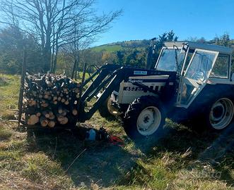 con forca e pala anteriore più cassone posteriore. Perfettamente funzionante. 2522 ore di lavoro.