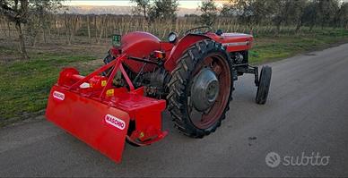 Trattore Massey Ferguson 135 frutteto con motore tutto originale 3 cilindri ( 50 cavalli ) completo di targa e libretto originale, gomme quasi nuove, impianto elettrico e batteria nuova incluso di fresa Maschio 1.60cm pronto per lavorare a qualsiasi prova anche con meccanico di fiducia.