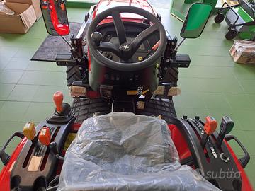 TRASMISSIONE E TRAZIONETipo: 4WD (trazione integrale)Cambio:M: Meccanico 9+3 marce con leve lateraliH: Idrostatico a 3 gamme (Low-Medium-High) con comando a pedaliFrizione: Singola a seccoDifferenziale posteriore: Bloccaggio meccanicoVelocità max: 23 km/h FRENI E STERZOFreni posteriori: A dischi multipli in bagno d'olioSterzo: Idroguida per massima maneggevolezza anche in spazi stretti PRESA DI FORZAPosteriore: 540 / 540E rpmPTO ventrale: solo su versione HAzionamento: meccanico a levaSOLLEVATORE E IDRAULICATipo: Idraulico con comando manuale, controllo posizione e sforzo controllatoCapacità di sollevamento:M (953 cc): 750 kgM (1318 cc): 850 kgH: 900 kgAttacco a 3 punti: Categoria 1Pompa idraulica:M (953 cc): 1 pompa (11 l/min)M (1318 cc) e H: 2 pompe (11 + 11 l/min)Distributori posteriori: 1 doppio effettoI VANTAGGI CHE FANNO LA DIFFERENZA Più potenza e coppia rispetto ai concorrenti diretti nella stessa fascia di peso. Compattezza imbattibile: entra tra filari, serre e passaggi stretti dove gli altri non possono. Doppia versione (meccanica o idrostatica) per adattarsi a ogni esigenza. Sollevatore più potente della categoria: fino a 900 kg reali. Affidabilità Carraro + motore Mitsubishi = zero compromessi. Consumi minimi, emissioni ridotte, massima resa.