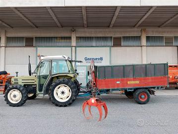 Trattore Hurlimann 468 DT motore 68 cavalli 4 cilindri, 40 km h raffreddato liquido. Il trattore dovrebbe essere praticamente un Same Explorer 70 special DT ma raffreddato ad acqua. 70 cavalli 4 cilindri, cilindrata 4000, anno 1989 , 40 km/h, ore 6.500 circa, idroguida, freni anteriori, tara 28 quintali, cambio meccanico laterale inversore meccanico, inversore meccanico 20 avanti 20 indietro, 5 cinque marce con 4 quattro gamme superiduttore, due prese di forza posteriori: una normale 540 e 1000 giri e un'altra sincro per la trazione posteriore del rimorchio motrice, traino 60 quintali, gomme posteriori 420/70 R30 e anteriori 320/70 R24, trattore funzionante. Abbinato rimorchio Tonini TE 46 ruote motrici, misure 170 x 350 anno 1983 con applicata gru anno 2007 con pinza girevole idraulica, buona macchina in Lonato del Garda