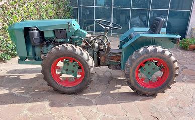 Vendo trattore snodato privo di libretto con motore Lombardini LDA97 cv 17 cilindrata 638 anni 70. Gli sono stati eseguiti i seguenti lavori: verniciatura carrozzeria, cambio paraoli dei mozzi piccoli e grandi anteriore e posteriore dx, tubi pressione idraulici del sollevatore, revisionato pistone idraulico di tutti i paraoli e oring, serbatoio pulito internamente con cambio della guarnizione principale, cambio olio trasmissione e cambio lt 8, cambio olio idraulico pistone sollevatore lt 4. Gli é stata aggiunta guaina con filo in accio e pomello per arrestare il trattore. Il trattore ha la fresa e aggancio per attaccate eventuale carrello.