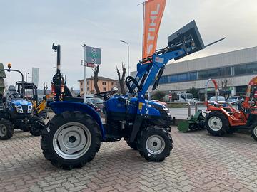 Trattore SOLIS S16 con CARICATORE FRONTALE con FORCA LETAME e/o LEGNA SFILABILE - Sollevamento Kg 500 - Opzionale Forca Pallet e/o Forca per Rotoloni Fienagione - Doppia Trazione - Motore 979 cc 3 Cilindri Euro5 (STAGE V) - Trasmissione Meccanica con Cambio 6 AV + 2 RM - Trazione Integrale 4 Ruote Motrici Disinseribile Capacità Serbatoio Gasolio lt 26,5 - Larghezza Minima Esterna cm 100 con Ruote a Dischi Registrabili 8 Posizioni - Ponte Anteriore Maggiorato con Raggio di Sterzata SuperSteer 3 metri - Cofano Motore Apribile Frontalmente per Agevole Manutezione - Arco di Protezione Reclinabile a Normativa - Documentazione per Immatricolazione & Circolazione Stradale - Distributore Idraulico Posteriore a Doppio Effetto - Sollevatore Posteriore a Sforzo Controllato con 10 Regolazioni & Capacità di Sollevamento Kg 500 - Freno di Stazionamento - Presa di Forza Posteriore 540 & 1.000 giri/minuto - 2 Specchietti Retrovisori Ripiegabili - Fanaleria Anteriore a 4 Fari - Faretto Posteriore Supplementare - Lampeggiante / GiroFaro - Contrappeso Anteriore Integrato - Bloccaggio Differenziale Posteriore a Pedale - Sedile Molleggiato con Regolazione & Cintura di Sicurezza - 2 Ganci Traino Posteriore & Anteriore - Peso Totale Kg 970 - Garanzia Ufficiale 3 Anni - Disponibile Intera Gamma Trattori SOLIS fino a 90 Hp - Prezzo in Offerta - Possibilità Installazione Kit Industria 4.0 per Accedere alle Agevolazioni Recupero Credito di Imposta sui Contributi del 20% o 65% - Richiedi Tranquillamente il Tuo Preventivo - Possibilità Finanziamento Intero Importo Fino a 50.000 Euro in Tutta Italia con Durata Massima 120 Mesi e Delibera in Giornata (Interamente Online) - Super Offertissima in Pronta Consegna -