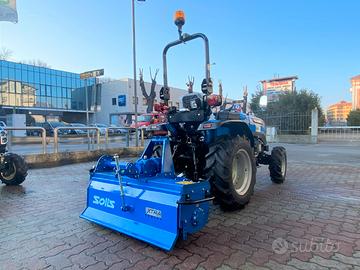 Trattore SOLIS S22 - Trasmissione Meccanica 6 AV + 2 RM Sincronizzato con Riduttore Lente/Veloci - Trazione Integrale 4 Ruote Motrici Disinseribile - Motore 1.130 cc 3 Cilindri in Linea Raffreddato a Liquido - Doppia Trazione Disinseribile - Capacità Serbatoio Gasolio lt 26 - Larghezza Minima Esterna cm 105 con Ruote a Dischi Registrabili 8 Posizioni - Gommatura Radiale - Ponte Anteriore Maggiorato con Raggio di Sterzata senza freni 3,15 metri con Idroguida - Sedile Molleggiato con Regolazione & Cintura di Sicurezza - Cofano Motore Apribile Frontalmente per Agevole Manutezione - Arco di Protezione Reclinabile a Normativa - Documentazione per Immatricolazione & Circolazione Stradale - Distributore Idraulico Posteriore a Doppio Effetto - Sollevatore Posteriore a Sforzo Controllato con 10 Regolazioni & Capacità di Sollevamento Kg 600 - Freno di Stazionamento - Presa di Forza Posteriore 540 & 1.000 giri/minuto - 2 Specchietti Retrovisori Ripiegabili - Fanaleria Anteriore a 4 Fari - Faretto Posteriore Supplementare - Lampeggiante / GiroFaro - 2 Contrappesi Anteriori Integrati 15 Kg Cadauno - Bloccaggio Differenziale Posteriore a Pedale - 2 Ganci Traino Posteriore & Anteriore - Peso Totale Kg 1.070 - Garanzia Ufficiale 5 Anni - Trincia Posteriore Originale Solis Larghezza di Lavoro cm 120 Opzionale - Possibilità di Sostituire Attrezzo Terminale con Forca a 2 Denti per Rotoloni Fienagione (Capacità dì Sollevamento Kg. 450) , Forca Pallet , Forca per Letame , Lama neve , Fresa Terra, Aratro, Gancio per Sollevamento Pesi - Disponibile Intera Gamma Trattori SOLIS fino a 90 Hp - Possibilità Installazione Kit Industria 4.0 per Accedere alle Agevolazioni Recupero Credito di Imposta sui Contributi del 20% o 45% - Richiedi Tranquillamente il Tuo Preventivo - Possibilità Finanziamento Intero Importo Fino a 50.000 Euro in Tutta Italia con Durata Massima 120 Mesi e Delibera in Giornata (Interamente Online) - Consegna & Assistenza in Tutta ITALIA - Super Offertissima in Pronta Consegn