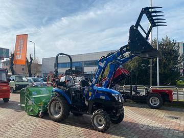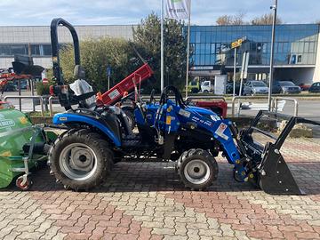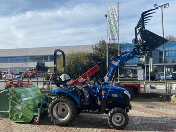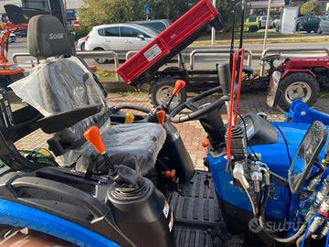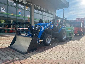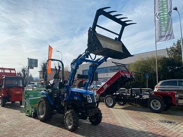 Trattore SOLIS S 26 SHUTTLE XL con Caricatore Daniele Giraudo & Benna con Ritegno Idraulico - Larghezza Benna cm 120 Completamente Sfilabile - Doppia Trazione - Motore MITSUBISHI 1.318 cc 3 Cilindri in Linea Euro5 (STAGE V) - Filtro Aria a Secco con Sensore Intasamento - Trasmissione Meccanica con Cambio 6 AV + 2 RM Sincronizzato - Trazione Integrale 4 Ruote Motrici Disinseribile Capacità Serbatoio Gasolio lt 26,5 - Larghezza Minima Esterna cm 112 con Ruote a Dischi Registrabili 8 Posizioni - Gommatura Radiale - Ponte Anteriore Maggiorato con Raggio di Sterzata SuperSteer 2,3 metri con Idroguida - Cofano Motore Apribile Frontalmente per Agevole Manutezione - Arco di Protezione Reclinabile a Normativa - Documentazione per Immatricolazione & Circolazione Stradale - Distributore Idraulico Posteriore a Doppio Effetto - Sollevatore Posteriore a Sforzo Controllato con 10 Regolazioni & Capacità di Sollevamento Kg 600 - Freno di Stazionamento - Presa di Forza Posteriore 540 & 1.000 giri/minuto - 2 Specchietti Retrovisori Ripiegabili - Fanaleria Anteriore a 4 Fari - Faretto Posteriore Supplementare - Lampeggiante / GiroFaro - 2 Contrappesi Anteriori Integrati 15 Kg Cadauno - Bloccaggio Differenziale Posteriore a Pedale - Sedile Molleggiato con Regolazione & Cintura di Sicurezza - 2 Ganci Traino Posteriore & Anteriore - Peso Totale Kg 1.070 - Garanzia Ufficiale 5 Anni - Disponibile Intera Gamma Trattori SOLIS fino a 90 Hp - Trincia Posteriore Originale Solis Larghezza di Lavoro cm 120 Opzionale - Possibilità di Sostituire Attrezzo Terminale con Forca a 2 Denti per Rotoloni Fienagione (Capacità dì Sollevamento Kg. 450) , Forca Pallet , Forca per Letame , Lama neve , Fresa Terra, Aratro, Gancio per Sollevamento Pesi - Prezzo in Offerta - Possibilità Installazione Kit Industria 4.0 per Accedere alle Agevolazioni Recupero Credito di Imposta sui Contributi del 20% o 65% - Richiedi Tranquillamente il Tuo Preventivo - Possibilità Finanziamento Intero Importo Fino a 50.000 Euro in Tu