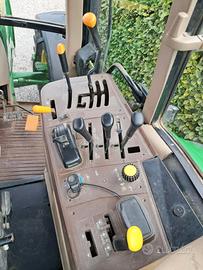 Trattore usato John Deere 6620 SE DT. Anno 2005, potenza 140 CV, ore di lavoro 6.000, trazione 4RM e trasmissione meccanica con 4 marce sotto carico. Trattore completo di cabina originale con aria condizionata, fanali da lavoro, poltroncina meccanica, radio, distributori idraulici a 6 vie, freni ad aria, gancio di traino C 50 q.li + D3 200 q.li, PTO 540/540E/1000 e zavorre anteriori. Macchina in ottimo stato. Occasione.