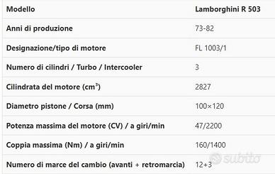 trattore usato marca Lamborghini modello R503 DT frutteto/vigneto completo di telaio di protezione motore 3 cilindri