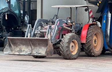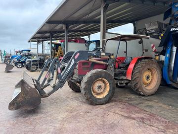 Trattore usato marca Same modello Explorer Special 80 DT con arco di protezione e tettuccio completo di caricatore frontale Argnani e Monti Export con benna buone condizioni complessive