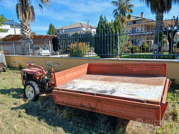SPECIFICHE GENERALI: - CILINDRATA: cm 510 - KW: 10.30 - TARA CON CARRELLO: 600 Kg - MASSA COMLESSIVA CON CARRELLO: 1300 Kg - ACCENSIONE ELETTRONICA SE DOTATO DI BATTERIA - ACCENSIONE MANUALE CON CORDINO SENZA BATTERIA - VERSIONE MOTRICE E CARRELLO: - LUNGHEZZA TOTALE: 4.5 m circa - LUNGHEZZA DI CARICO CARRELLO: 2 m circa - LARGHEZZA DI CARICO CARRELLO: 1.3 m circa - QUATTRO RUOTE MOTRICI - BLOCCO DIFERENZIALE AUTONOMO PER MOTRICE E CARRELLO - VERSIONE MOTOCOLTIVATORE: - CON FRESA DA 80 cm (compresa nel pacchetto) - MANUTENZIONI EFFETTUATE 15/10/2022: - CAMBIO FRIZIONE - CAMBIO GOMME E CAMERE D'ARIA DELLA MOTRICE - CAMBIO POMPANTE GASOLIO - CAMBIO OLIO MOTORE E FILTRI - ELEMENTI MANCANTI: - CERCHIO RIMORCHIO (attualmente monta 2 ruote della Y poiché) compatibili) - ASTE DEL CAMBIO; DIFFERENZIALE; FRESA; IN VERSIONE MOTOCOLTIVATORE(sostituite con delle altre artigianali) - BATTERIA PER ACCENSIONE ELETTRONICA -