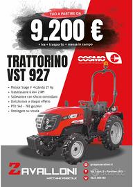 La società Zavalloni S.r.l. comunica alla clientela la disponibilità per la vendita promozionale di trattorini 4x4 COSMO in promozione: