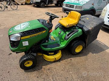 Vendo trattorino John Deere X115R con sistema di raccolta e mulching in ottime condizioni: - trasmissione nuova - lame nuove - cinghie nuove - gomme nuove Prezzo € 1.800,00 trattabili.