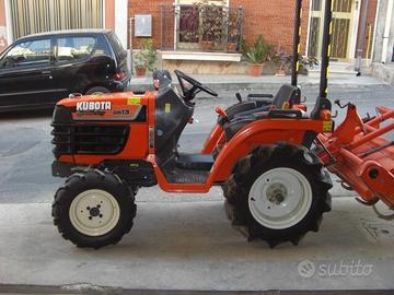 Trattorino usato Kubota modello GB13 CARATTERISTICHE: 4 ruote motrici 20 cv - 3600 rpm motore Kubota revisionato COMPLETO DI: Fresa Roll-bar Cintura di sicurezza Manuale uso e manutenzione Certificato CE Prezzo: 5.500 + IVA Se richiesto forniamo attrezzature come: TRINCIA A MAZZE PESANTI ERPICE A MOLLE ERPICE 4 PUNTE ARATRO MONOVOMERE TRAILER CASSONCINO