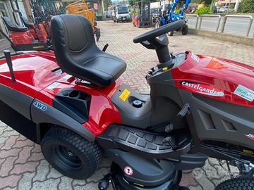 Trattorino Rasaerba Castelgarden XHT 240 4WD - Nuovissimo Modello Trazione Integrale 4WD - Idrostatico Bicilindrico - Motore 4 Tempi STIGA 635 cc - Totalmente Idrostatico con Avanzamento e Arretramento a Pedale - Kit Taglio Mulching Incluso con Piatto a 2 Lame Sincronizzate cm 102 - 9 Regolazioni Altezza Taglio da 25 a 100 mm - Innesto Trazione Elettroidraulico con Pulsante per Attivazione Taglio in Retromarcia - Sacco Posteriore 360 Litri - Ruotini Anti-Scalpo - Scarico Laterale - Piatto Oscillante con Ruotini di Appoggio - Innesto Lame a Frizione Elettromagnetica - Funzione Cruise Control per impostare Velocità Costante Ottimizzando Tempo di Lavoro - Innesto Rapido per Lavaggio Piatto Autonomo - Sedile Molleggiato - Volante Ergonomico con Impugnatura Morbida - Fari di Lavoro Notturno - Paraurti Frontale - Pannello di Controllo con Indicatori su Cruscotto - Carica batteria, Kit Mulching e Gancio di Traino Inclusi - Dimensioni LxPxH 255x106x131 cm - Peso Kg 284 - Prezzo in Offerta - Richiedi Tranquillamente il Tuo Preventivo - Possibilità Pagament0 Mezzi & Prodotti in Massimo 120 Mesi Fino a 50.000 Euro con Delibera in Giornata (Interamente Online) in Tutta Europa - Super Offertissima in Pronta Consegna -