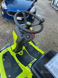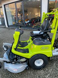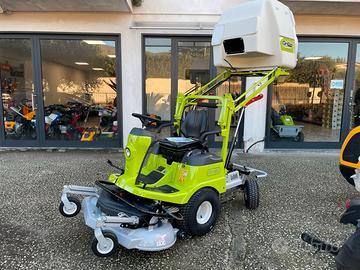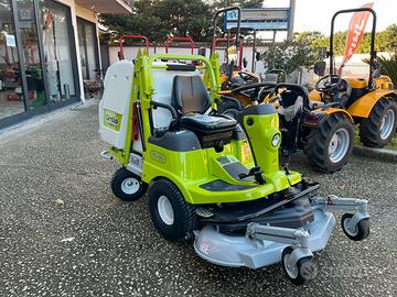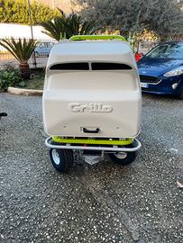 Trattorino GRILLO FD 450 Motore B&S 7220 22 hp benzina, 2 cilindri Cilindrata 656 cm³ Cambio Idrostatico con bloccaggio differenziale integrato Frizione elettromagnetica Piatto a 3 lame, larghezza 120 cm. Cesto di raccolta 450 lt. Altezza massima di scarico mt. 1,70 Scarico del cesto e alzata piatto con sistema idraulico.
