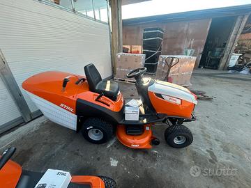 Trattorino da giardino potente con elevato comfort di comando e di guida. Per la cura di superfici erbose ampie. Con trazione a 1 pedale specifica di STIHL e cesto raccolta erba da 250 litri. Potenza 8,2/11,1 kW/CV. Motore STIHL EVC 4000. Cilindrata 452 cm³. Potente trattorino tosaerba per la manutenzione di grandi prati Per proprietari di giardini privati e paesaggisti Trasmissione a 1 pedale per manovre rapide Regolazione dell'altezza di taglio e frizione della lama facili da usare Comodo grazie al sedile di guida regolabile Cesto raccoglierba in plastica da 250 litri con manico a sciabola