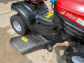Trattorino Rasaerba Usato EFCO 99 L / 14,5 K - Dimostrativo Pari Nuovo - Idrostatico con Taglio Mulching Incluso a Scarico Laterale - Motore EMAK K 1450 AVD OHV Valvole in Testa - 4 Tempi 432cc - Cambio Idrostatico - Velocità max AV 8,8 Km/h RM 3,8 Km/h - Larghezza Taglio cm 98 - Altezza Taglio Regolabile a 7 Posizioni mm 30-80 - Piatto Taglio con Foro per Lavaggio Automatico - Innesto Taglio Elettromagnetico - Pulsante Taglio in Retromarcia - Raggio Sterzata cm 70 - Avanzamento Idrostatico - Pneumatici Maggiorati a Bassa Compattazione Terreno - Freno a Disco su Trasmissione - Freno di Stazionamento - Peso Kg 160 - Prezzo in Offerta - Richiedi Tranquillamente il Tuo Preventivo - Possibilità Pagament0 Mezzi & Prodotti in Massimo 120 Mesi Fino a 50.000 Euro con Delibera in Giornata (Interamente Online) in Tutta Europa - Super Offertissima in Pronta Consegna -
