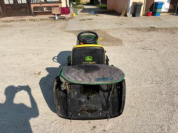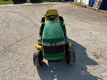 Trattorino rasaerba john deere ltr180, sempre usato nel giardino di casa che non ha pendenze, il meccanico lo revisiona ogni qualvolta serva! Unica pecca che ha la scossa davanti rotta in quanto ha preso una pallonata, per il resto va che è una meraviglia. Lo cambio solo perchè a breve avremo un altro grande giardino da tener rasato e quindi ne cerco uno piu grande e a raggio zero.