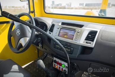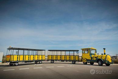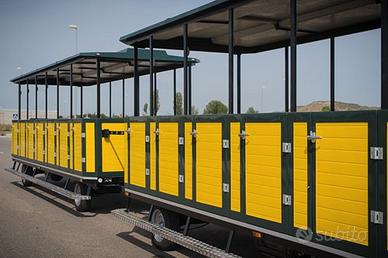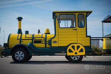 Trenino Turistico Lillipuziano, motorizzazione Toyota Hilux 2500 cc diesel 4x4 euro 6 composto da motrice e due vagoni da 20 posti a sedere cadauno, pedana disabili manuale. Ideale per tour, navetta, scuola bus etc