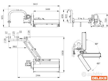 Trincia laterale con 1500mm di taglio, 478 kg, con scatola esterna per trattori tipo frutteto - DELEKS GIRAFFA-130 - Trincia argini con cardano omocinetico da 1800mm