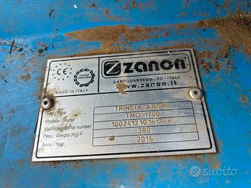 Trincia fossi marca Zanon a mazze modello TMO 1700- larghezza di lavoro 1,70m- peso 380 kg- anno 2016- CE- spostamento e inclinazione idraulica- in ottime condizioni- pronta all'uso